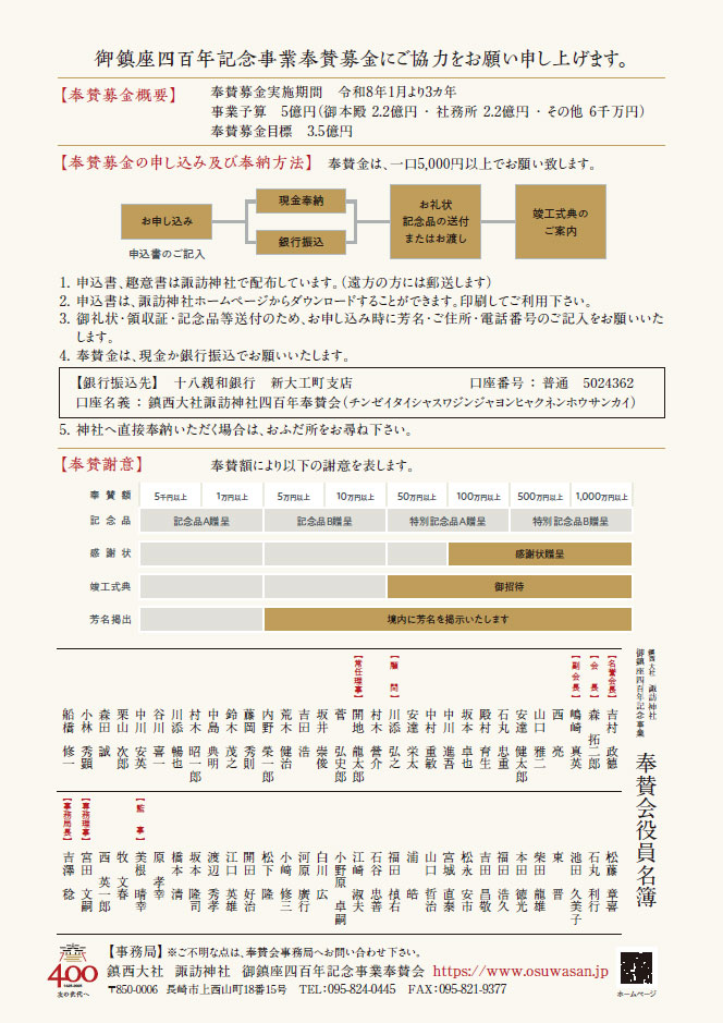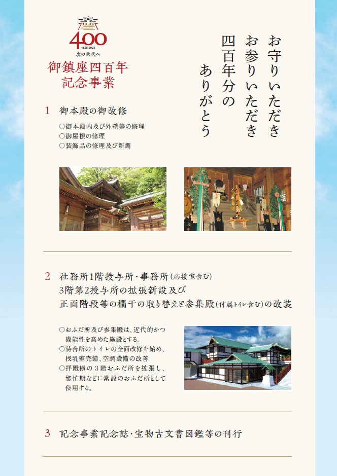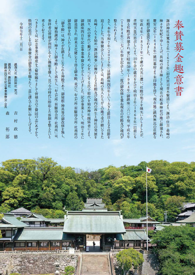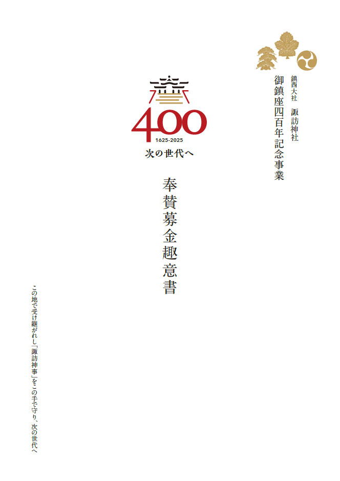 諏訪神社御鎮座四百年記念事業へのご奉賛のお願い